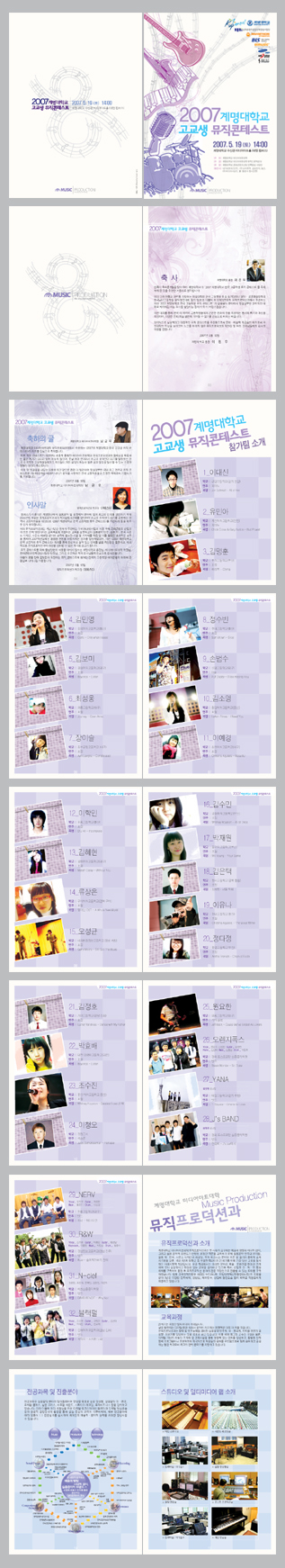 대학교 실용음악과에서 주최하는 뮤직 콘테스트 행사 팜플렛입니다